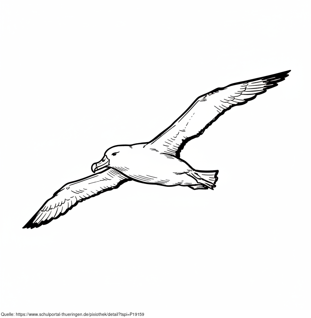 Das Bild zeigt einen gezeichneten Albatros. Das Bild wurde mittels einer KI (Gemini) erstellt und ist unter CC0 lizenziert. Weitere Bilder aus Herrn Emrich-Försters Bild-Archiv findet man hier: https://pix.foerster.rocks/