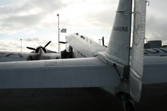 Das Foto gehört zu einer Serie mit Fotos der Junkers Ju 52 (Spitzname Tante Ju) mit dem Namen "Berlin-Tempelhof" auf dem Flughafengelände Lübeck. Das Flugzeug ist ein restauriertes Produkt der Junkers Flugzeugwerk AG Dessau aus dem Jahr 1936.