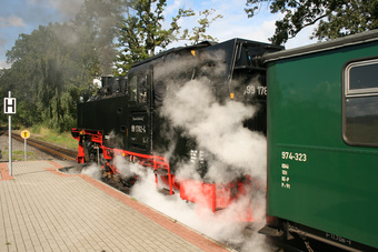 Abgebildet ist die Schmalspurbahn Rasender Roland.