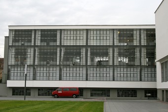 Das Foto gehört zu einer Serie mit Fotografien vom Bauhausgebäude in Dessau, aufgenommen 2010.