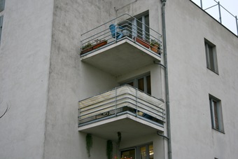 Bauhausbauten in Dessau: Balkone am Konsumgebäude