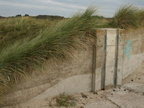 Spiekeroog: Gemauerte Steinwand vor Dünen