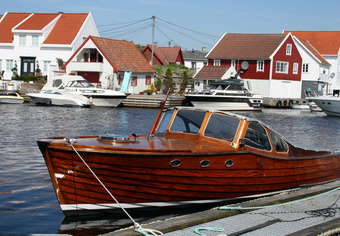 Abgebildet sind Häuser auf der Insel Karmoy.