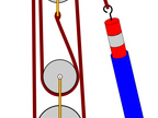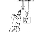 Abgebildet ist ein Flaschenzug (kraftumformende Einrichtung).