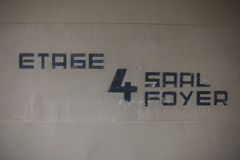 Bauhaushotel Probstzella: Originalbeschriftung im Treppenhaus