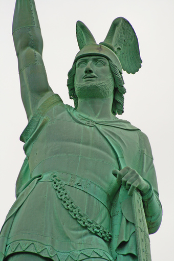Das Foto gehört zur Serie "Hermannsdenkmal" (Teutoburger Wald). Es zeigt den Oberkörper vom Standbild des Arminius. Es gelten die Nutzungsbedingungen der Mediothek und Pixiothek.