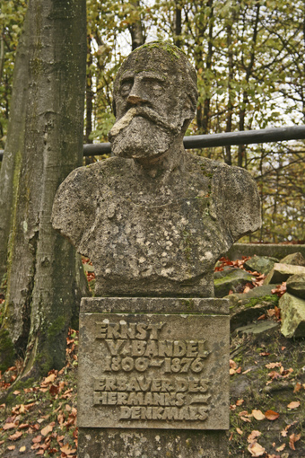Das Foto gehört zur Serie "Hermannsdenkmal" (Teutoburger Wald). Es zeigt eine Statue von Ernst von Bandel, dem Erbauer des Denkmals. Es gelten die Nutzungsbedingungen der Mediothek und Pixiothek.