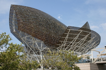 Das Foto gehört zur Serie "Barcelona". Barcelona ist die Hauptstadt Kataloniens (Provinz in Spanien) und für ihre Architektur und Kunstwerke bekannt. Das Bild zeigt ein Kunstwerk, einen glänzenden Stahlfisch, im für die Olympischen Sommerspiele 1992 erbauten Port Olimpic. Es gelten die Nutzungsbedingungen der Mediothek und Pixiothek.