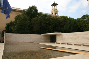 Barcelona-Pavillon: Eingangsbereich mit Wasserfläche