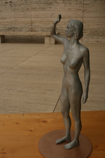 Das Foto gehört zur Serie "Deutscher Weltausstellungspavillon Barcelona 1929". Der deutsche Architekt Ludwig Mies van der Rohe entwarf diesen Pavillon. Er gilt heute als Architekturikone des 20. Jahrhunderts. Das Bild zeigt den Innenraum vom Pavillon mit der Skulptur "Der Morgen" des Künstlers Geog Kolbe. Es gelten die Nutzungsbedingungen der Mediothek und Pixiothek.