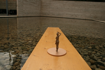 Das Foto gehört zur Serie "Deutscher Weltausstellungspavillon Barcelona 1929". Der deutsche Architekt Ludwig Mies van der Rohe entwarf diesen Pavillon. Er gilt heute als Architekturikone des 20. Jahrhunderts. Das Bild zeigt den Innenraum vom Pavillon mit der Skulptur "Der Morgen" des Künstlers Geog Kolbe. Es gelten die Nutzungsbedingungen der Mediothek und Pixiothek.