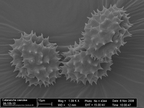 Das Bild gehört zu einer Serie Pollen-Fotografien, die mit einem Rasterelektronenmikroskop aufgenommen wurden. Zu sehen sind Pollen von Centaurea exsurgens, der Flockenblume (spec.). Entstanden ist das Bild im Zuge der Ausbildung zum Biologielaboranten/ zur Biologielaborantin an der Uni Jena.