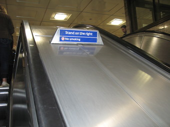 London: Hinweisschild auf der Rolltreppe