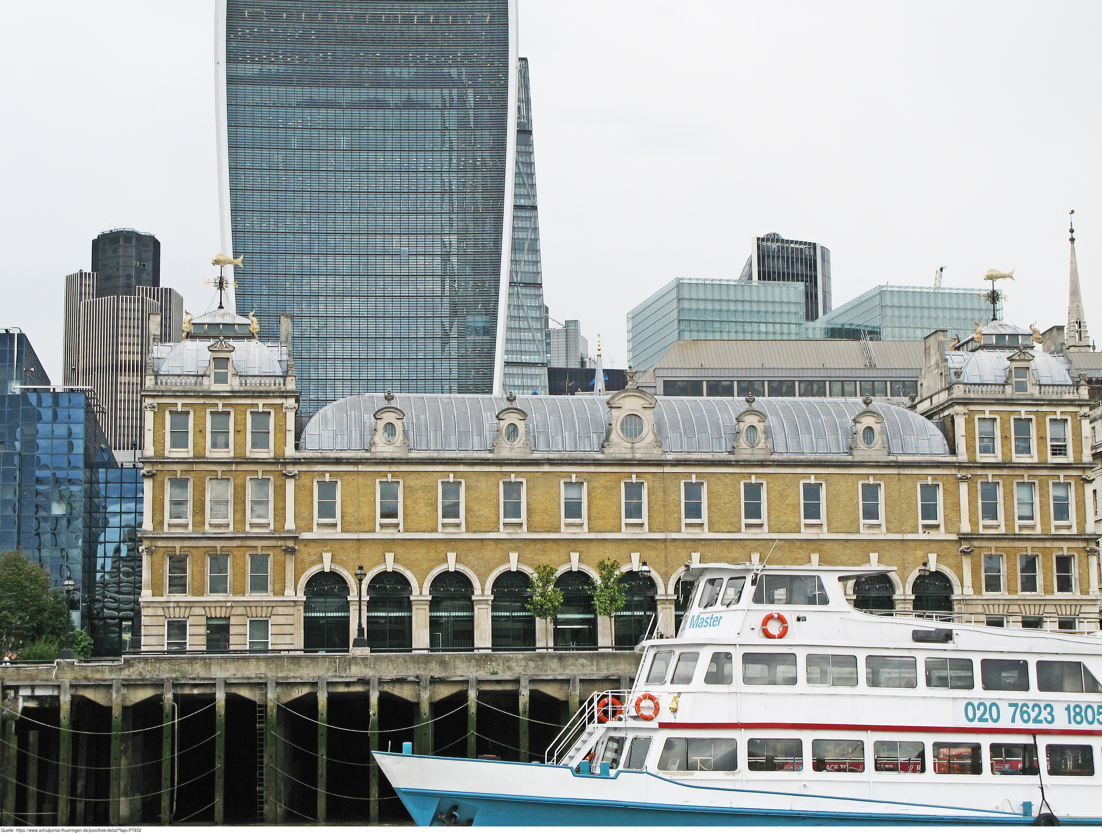 Das Foto gehört zur Serie London 2016. Es zeigt Old Billingsgate und dahinter das Hochhaus "The Walkie-Talkie" (20 Fenchurch Street). Es gelten die Nutzungsbedingungen der Mediothek und Pixiothek.