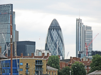 Das Foto gehört zur Serie London 2016. Es zeigt im Zentrum das Hochhaus 30 St Mary Axe, oft als "The Gherkin" (Gewürzgurke) bezeichnet. Als Büroturm einer Rückversicherung ist er auch unter dem Namen "Swiss Re Tower" bekannt. Es gelten die Nutzungsbedingungen der Mediothek und Pixiothek.