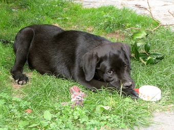Das Foto hehört zur Serie Hunde. Es zeigt einen jungen schwarzen Labrador Retriever. Es gelten die Nutzungsbedingungen der Mediothek und Pixiothek.
