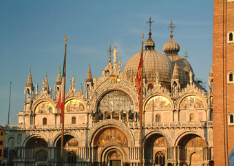 Das Foto gehört zur Serie "Venedig". Es zeigt die Basilica San Marco im Sonnenlicht. Es gelten die Nutzungsbedingungen der Mediothek und Pixiothek.