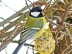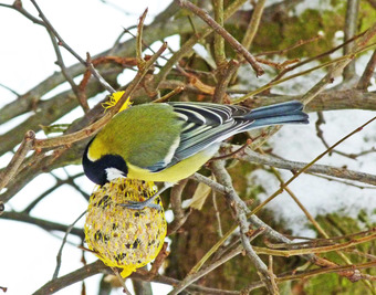 Das Foto gehört zur Serie "Vögel im Winter". Es zeigt eine Kohlmeise am Meisenknödel. Es gelten die Nutzungsbedingungen der Mediothek und Pixiothek.