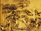 Das Foto gehört zur Serie "Paradiestür am Baptisterium von Florenz". Es zeigt Abraham und Isaak, ein Bronzerelief von Lorenzo Ghiberti. Es ist rechts in der zweiten Reihe der zehn Bildtafeln in seine Paradiestür (auch Paradiespforte genannt) eingebunden. Es gelten die Nutzungsbedingungen der Mediothek und Pixiothek.