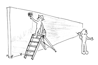 Das Foto gehört zur Serie "Paul". Es zeigt Paul neben einer Mauer, die frisch gestrichen wird. Das Bild ist unter CC0 lizenziert und kann somit frei verwendet werden.