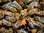 Bienenkönigin umringt von Arbeiterinnen
