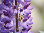 Gehörnte Mauerbiene auf einer Apfelblüte