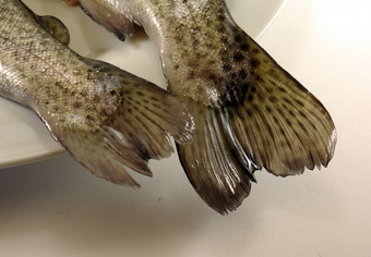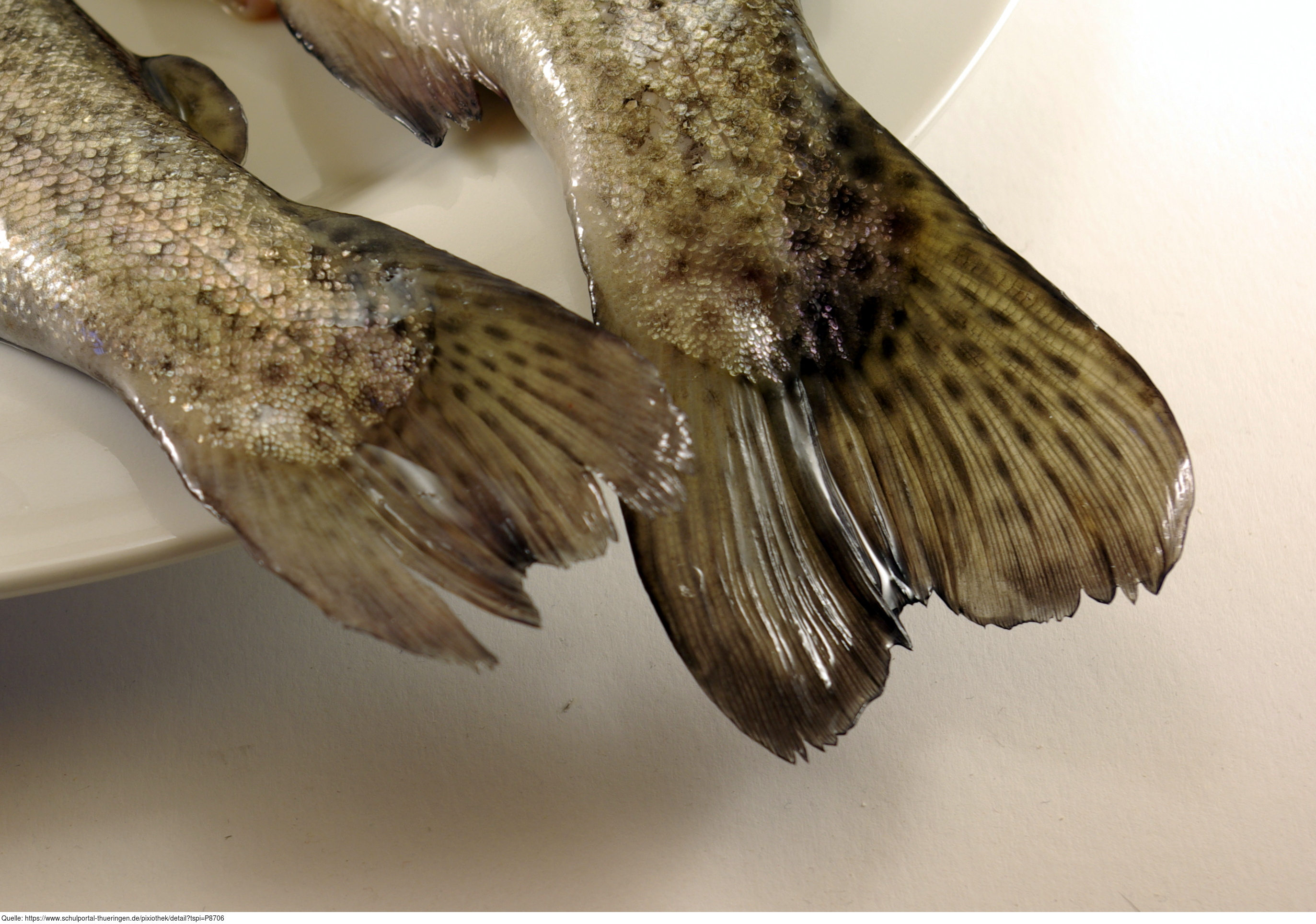Das Foto gehört zur Serie "Nahrungsmittel". Es zeigt die Schwanzflossen von Forellen. Das Bild ist unter CC0 lizenziert und kann somit frei verwendet werden.