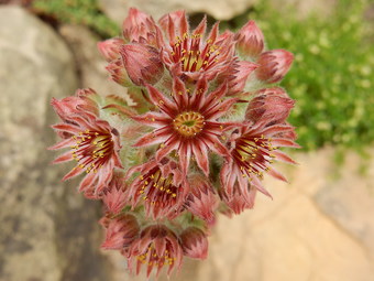 Das Foto zeigt die Blüten vom Dach-Hauswurz (Sempervivum tectorum), auch Echter Hauswurz, Gewöhnlicher Hauswurz, Donnerwurz, Alpen-Hauswurz genannt. Das Bild ist unter CC0 lizenziert und kann somit frei verwendet werden.