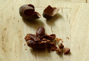 Das Foto gehört zur Serie "Kakao". Es zeigt eine zerstoßene, geröstete Kakaobohne. Das Bild ist unter CC0 lizenziert und kann somit frei verwendet werden.