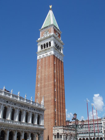Das Bild gehört zur Serie "Venedig". Es zeigt den Campanile (freistehender Glockenturm) am Markusplatz in Venedig. Das Bild ist unter CC0 lizenziert und kann somit frei verwendet werden.