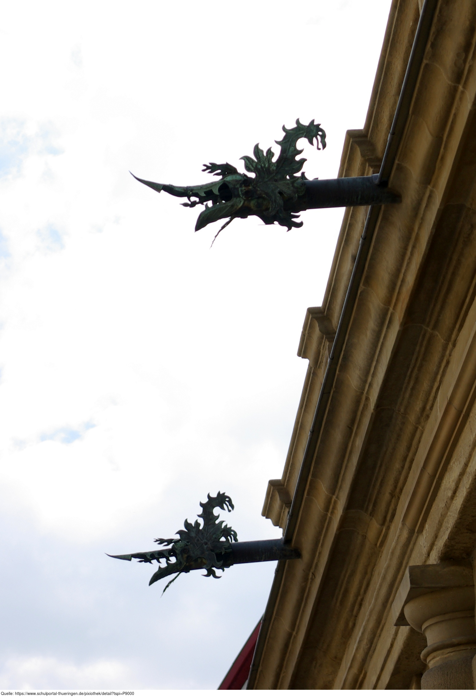 Das Bild gehört zur Serie "architektonische Elemente". Es zeigt Wasserspeier zur Wasserableitung an den Traufrinnen eines Gebäudes. Das Bild ist unter CC0 lizenziert und kann somit frei verwendet werden.