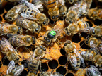 Bienenkönigin umringt von Arbeiterinnen