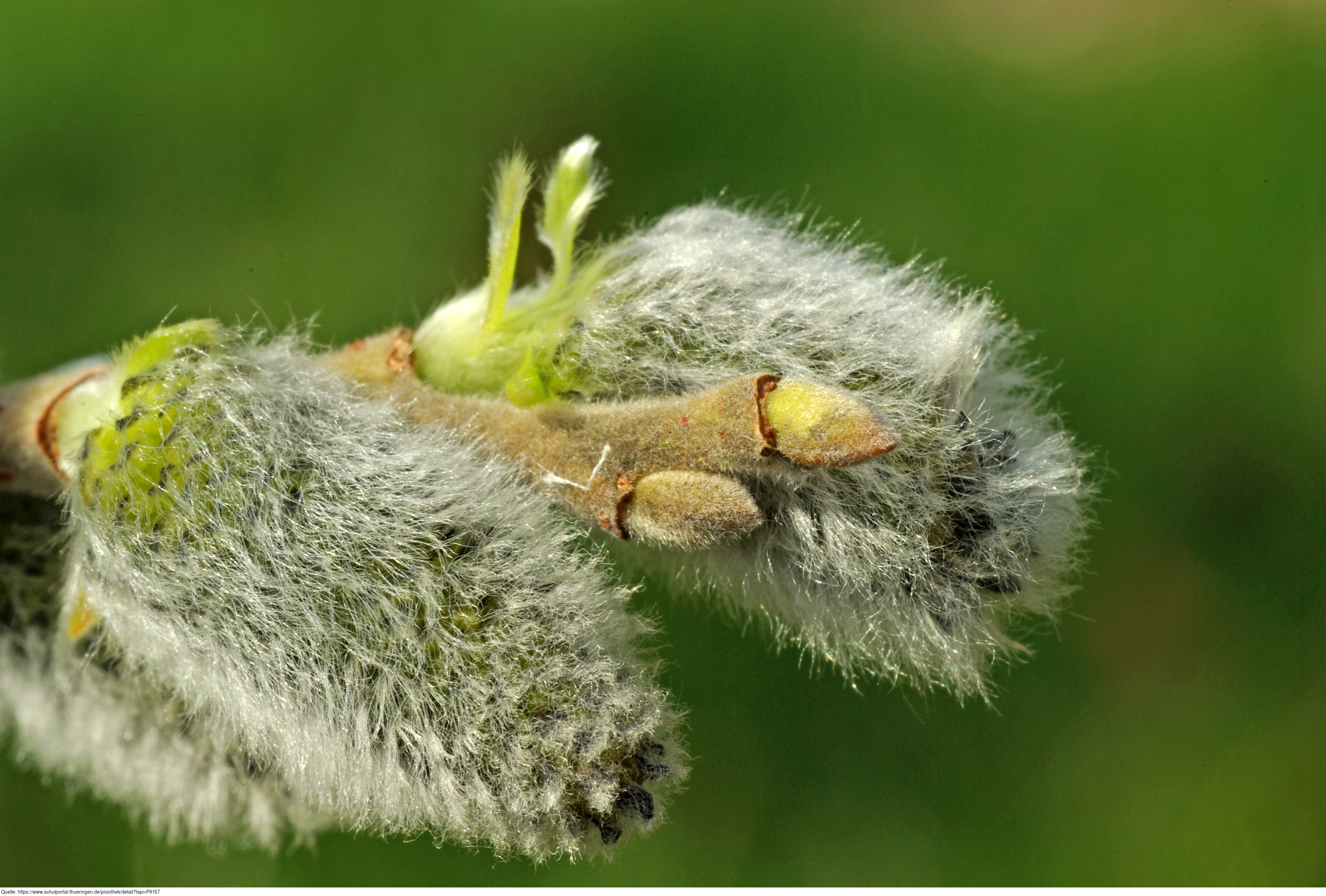 Das Foto gehört zur Serie "Laubbäume". Es zeigt Weidenkätzchen d. h. Blütenkätzchen der Weiden (Salix). Das Bild ist unter CC0 lizenziert und kann somit frei verwendet werden.