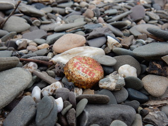 Flussufer mit Kronkorken