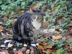 Hauskatze zwischen Blättern