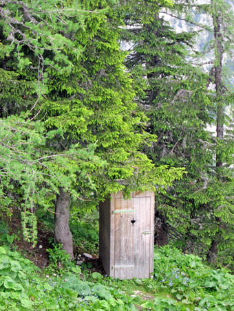 Das Foto zeigt eine Trockentoilette, umgangssprachlich als Plumpsklo bezeichnet. Das Bild ist unter CC0 lizenziert und kann somit frei verwendet werden.