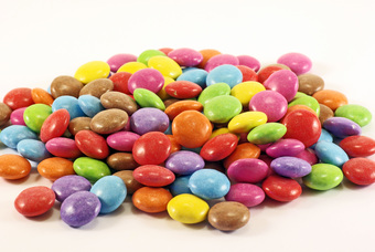 Das Bild gehört zur Serie "Süßwaren". Es zeigt verschiedenfarbige Schokolinsen (Schokoladenlinsen, Schokoladen-Dragées). Das Bild ist unter CC0 lizenziert und kann somit frei verwendet werden.