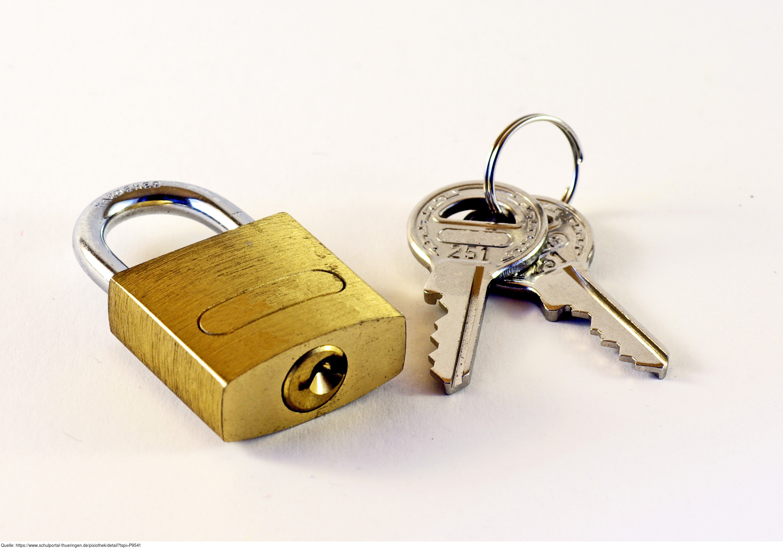 Das Bild gehört zur Serie "Sperrsysteme". Es zeigt ein Vorhängeschloss mit Schlüsseln. Das Bild ist unter CC0 lizenziert und kann somit frei verwendet werden.