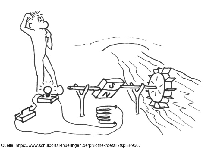 Das Foto gehört zur Serie "Paul". Es zeigt Paul bei der Erzeugung von Elektroenergie aus Wasserkraft. Das Bild ist unter CC0 lizenziert und kann somit frei verwendet werden.