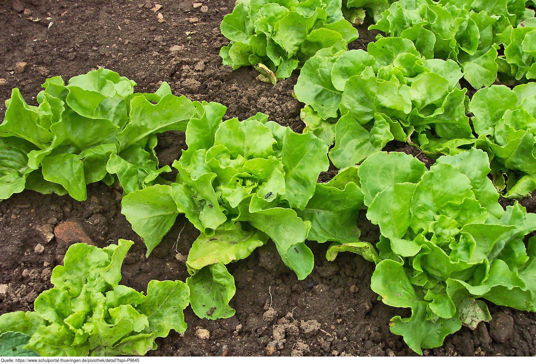 Das Foto gehört zur Serie "Gemüse". Es zeigt jungen Kopfsalat. Kopfsalat ist eine Sortengruppe des Gartensalats (Lactuca sativa). Das Bild ist unter CC0 lizenziert und kann somit frei verwendet werden.