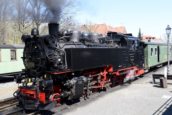 Das Bild gehört zur Serie „Zittauer Schmalspurbahn“. Die in der Oberlausitz verkehrende Schmalspurbahn besitzt eine Spurweite von 750 mm. Die Strecke verläuft von Zittau über Bertsdorf entweder nach Kurort Oybin oder Kurort Jonsdorf im Zittauer Gebirge. Eigentümer und Betreiber ist seit 1996 nach der Übernahme von der Deutschen Bahn die Sächsisch-Oberlausitzer Eisenbahngesellschaft. Die Strecke wurde 1890 in Betrieb genommen. Es gelten die Nutzungsbedingungen der Mediothek und Pixiothek.