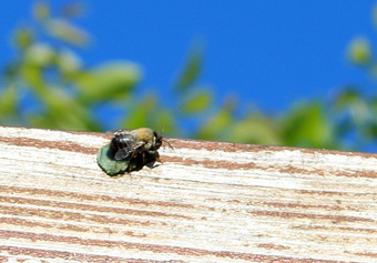 Das Foto gehört zur Serie "Bienen". Es zeigt eine Blattschneiderbiene (Megachile), auch Tapezierbiene genannt. Blattschneiderbienen bauen ihr Nest in Hohlräume, zum Beispiel Totholz, und tapezieren diese mit abgeschnittenen Blattstücken aus. Es gelten die Nutzungsbedingungen der Mediothek und Pixiothek.
